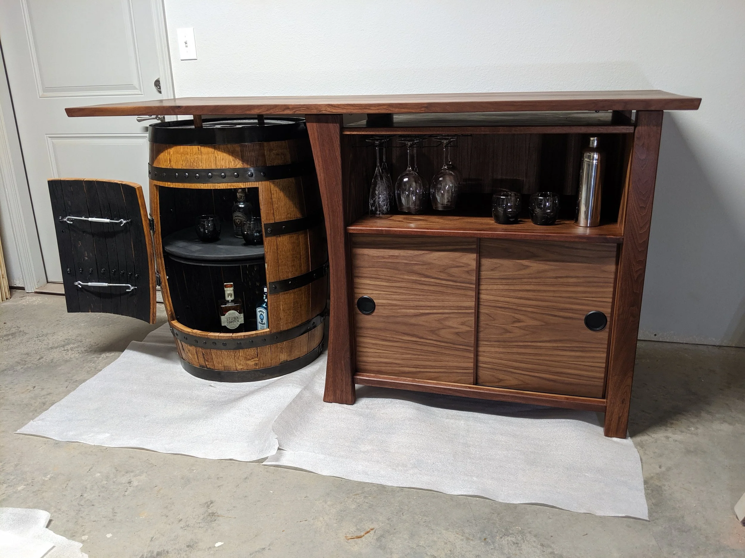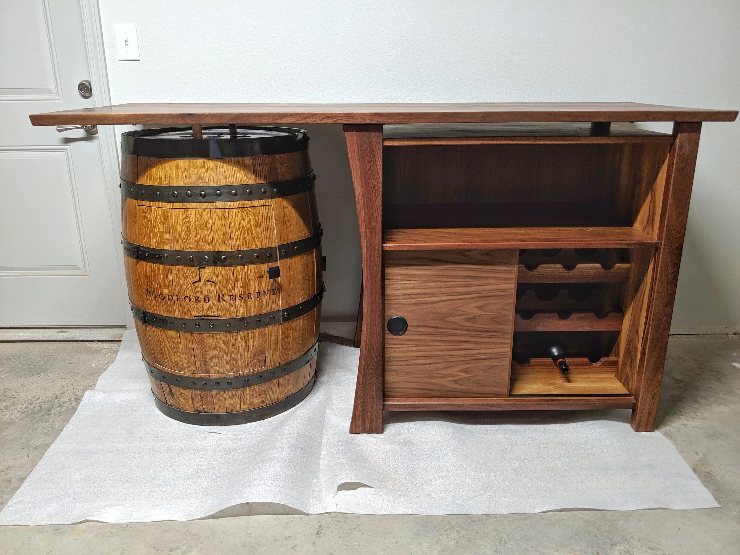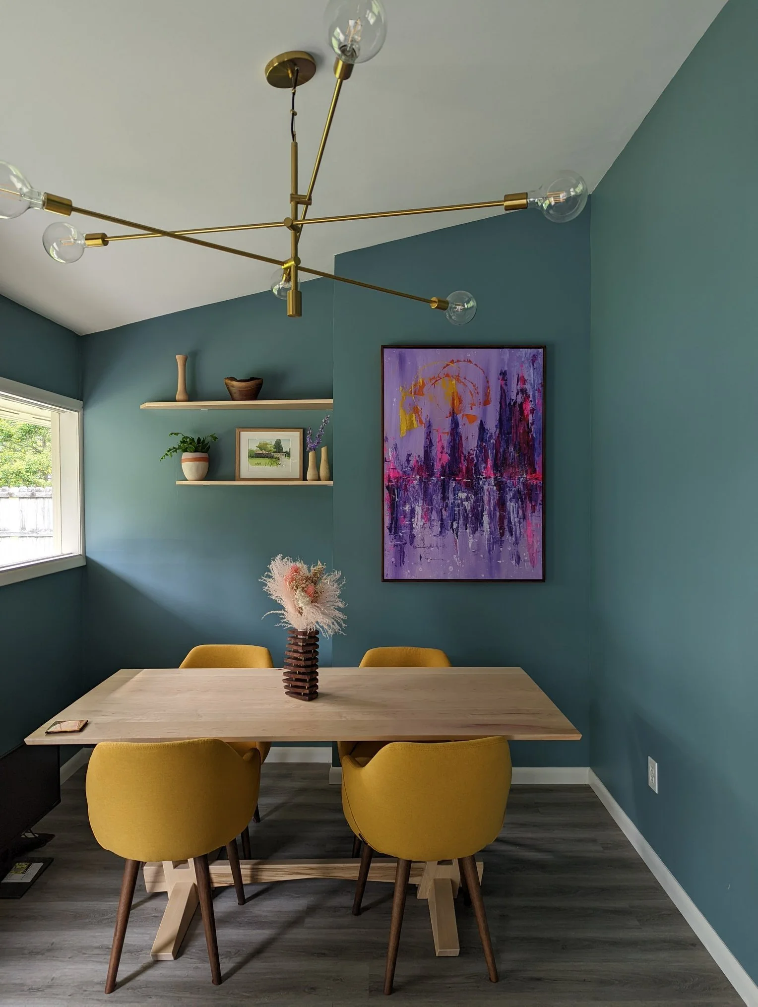 Dining room re-design with maple shelves, walnut vase, and walnut framed abstract painting